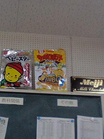 上の写真は後ろの黒板の上に貼られたBIG菓子袋です(笑